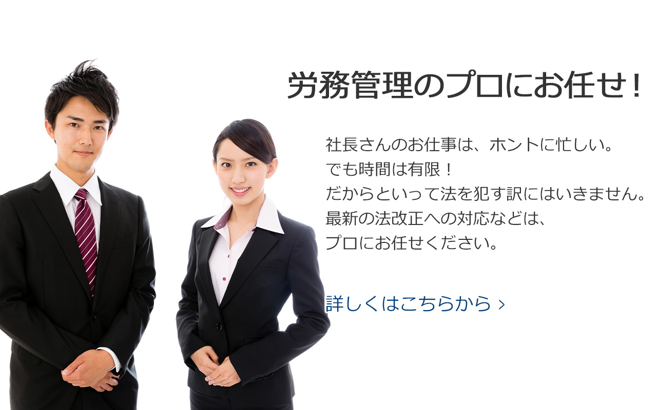 労務問題や就業規則、人事・求人登録手続き代行、助成金・補助金、会社設立、給与計算などに対応。